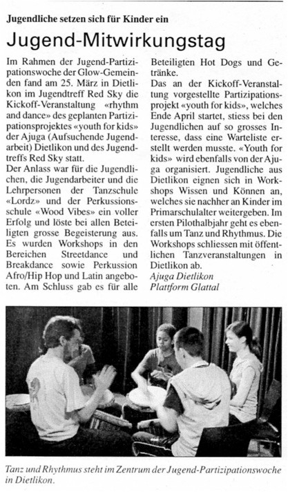 Circa fünfzig Aargauer Kinder und ebenso viele Erwachsene mit verschiedensten kulturellen und sozialen Hintergründen, welche in verschiedenen Funktionen alle Teil von „mit mir" sind, trafen gegen 11 Uhr im Kulturlokal Merkker zum Sonntagsbrunch ein. Die meisten der Besucher brachten Essen mit, um das Brunch-Buffet zu gestalten. So reichte das Angebot von selbstgebackenem Zopf, über Konfitüre, Fleischplatten, Früchten und kurdischem Essen, bis hin zu einer vielfältigen Kuchenauswahl. Mitarbeitende der Caritas Aargau, sowie freiwillige Mitarbeiterinnen des Projekts hiessen sie willkommen und nahmen das Mitgebrachte entgegen. Der Platz im Kulturlokal, welches von den Verantwortlichen von „Kinder Jugend Familie Baden" grosszügigerweise kostenlos zur Verfügung gestellt wurde, war knapp, doch man rückte zusammen und kam ins Gespräch. Nach dem Essen und Ansprachen der Bereichsleiterin „Diakonie und Freiwilligenarbeit" Regula Kuhn und der „mit mir" - Projektleiterin Lisa Preisig, beide von Caritas Aargau, begann das Nachmittagsprogramm mit der Perkussionsgruppe „Wood Vibes" und der ghanaischen Schmuckwerkstatt von „Chance For Children". Während die einen sich selber Halsketten, Armbänder und Ohrringe aus ghanaischen Altglasperlen (so genannten Beads) bastelten, nahmen andere an Perkussions- und Tanzanimationen teil. Afrikanische Rhythmen hallten durch und um das Kulturlokal und versetzten fast alle Besucher in irgendeiner Form in Bewegung. Die Musiker verstanden es, die Teilnehmenden mit Leichtigkeit und Spielfreude einzubeziehen und mitzureissen. Auf die Animation folgte ein halbstündiges Konzert von „Wood Vibes". Nach Kaffee und Kuchen begab man sich zum Abschluss auf die Ruine Stein, um ein grosses Gruppenfoto aller Teilnehmenden zu machen. Um 15.30 Uhr ging das Fest zu Ende, man verabschiedete sich und wünschte sich alles Gute bis zum nächsten Mal.